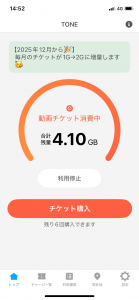 毎月「TONE」アプリ内で簡単な利用登録をするだけで、動画チケット2GBが使えるようになります。