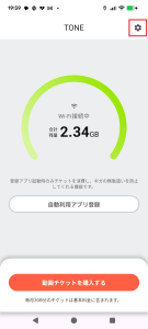 トーンモバイル(TONEアプリ)をご利用している端末から追加お申し込みを実施する際は、TONEアプリのトップ画面右上のボタンからお申し込みください。