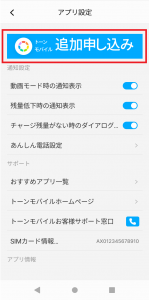 3.「トーンモバイルの追加申し込み」をタップし、お申し込みへお進みください。