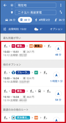 上の入力欄に出発地を入力し、下の入力欄に目的地を入力する