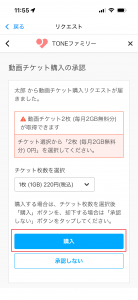 ※TONEファミリーをご利用の際、利用者が動画チケットの購入をした際に、保護者様の許可が必要な場合があります。