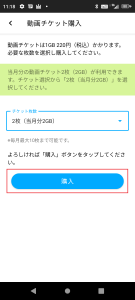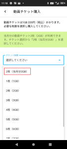 ※当月分動画チケットを利用する場合、チケットの枚数を「2枚(毎月2GB当月分)0円」に変更してください。