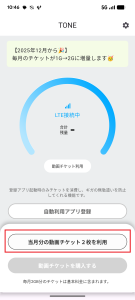 「当月分の動画チケット2枚を利用」ボタンをタップします。