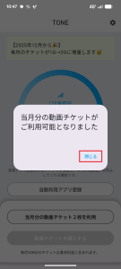 毎月、「TONEアプリ」上で簡単な利用登録をするだけで、動画チケット2GB分が使えるようになります。