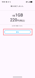 「動画チケットを購入する」ボタンをタップします。 ※1GB220円(税込)で、月8回まで購入可能です。